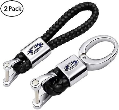 Villsion 2pack Genuine Leather Car Logo Keychain For Ford Keyring